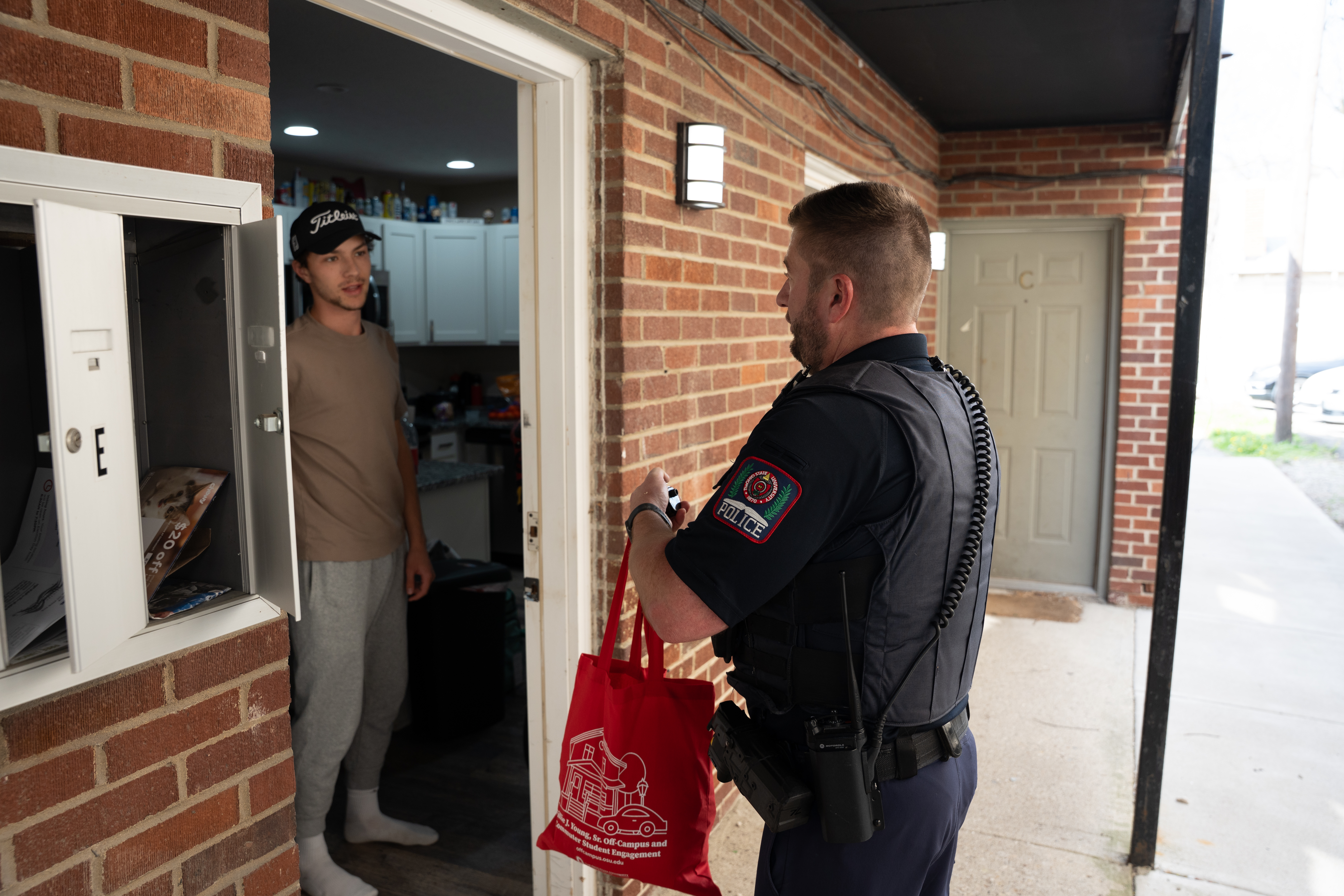 The Ohio State University Police Division officers headed door-to-door with Columbus Police officers, the university’s Office of Student Life Willie J. Young and Sr. Off-Campus and Commuter Student Engagement department for a neighborhood safety walk. The safety teams made their way through the University District in an effort to provide residents with helpful safety tips and information to help secure their homes before leaving for summer break.